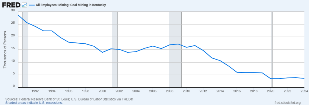 Because Kentucky has historically been one of the nation’s top coal producers, employment trends here help illustrate broader national patterns.